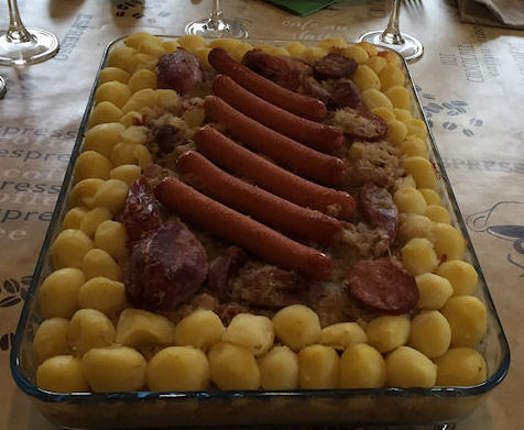 Vint ensuite la choucroute remarquablement préparée par Arpad Toth… Gewürtztraminer et Sylvaner nous ont aidés à nous souvenir des bons moments passés en Alsace à l’EMS